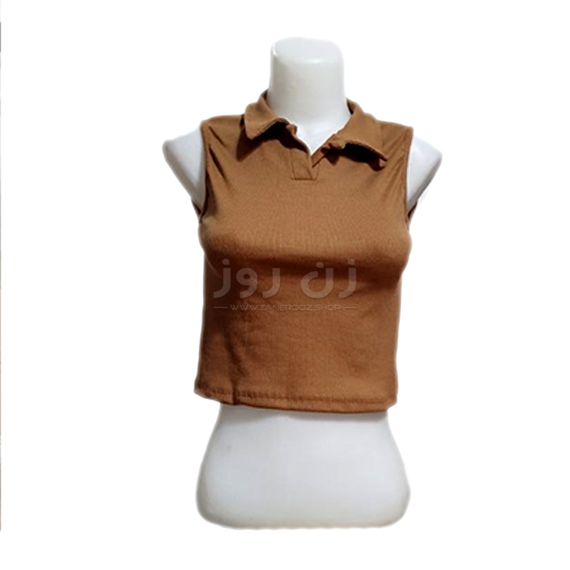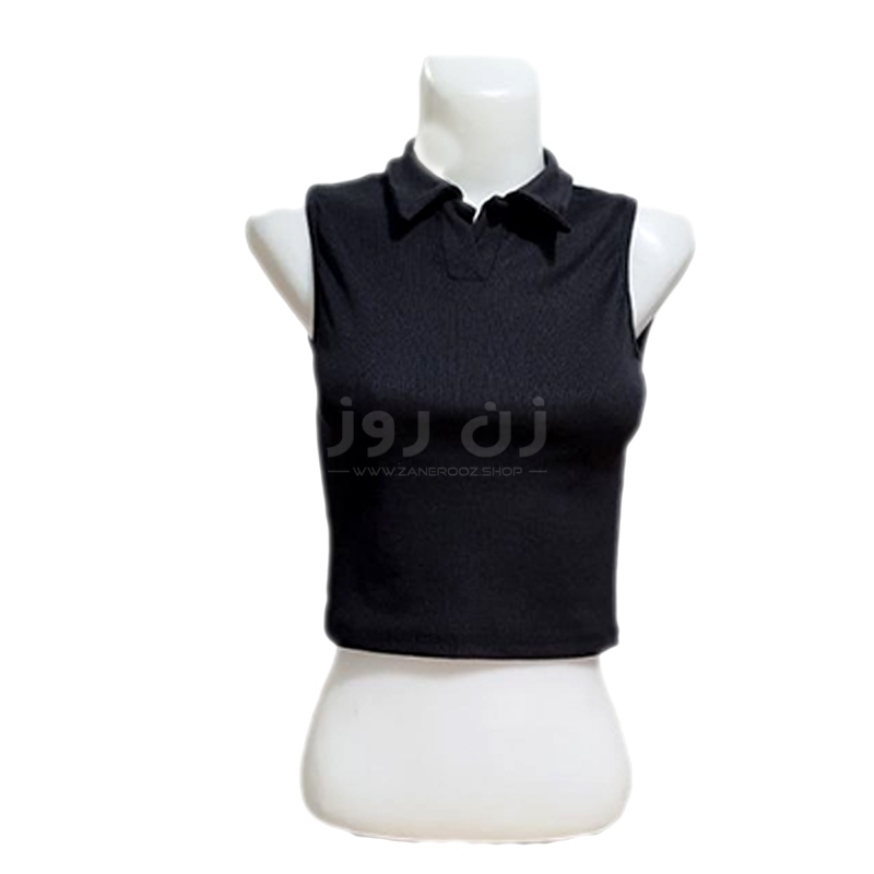 تاپ زنانه بدون آستین رکابی یقه مردانه