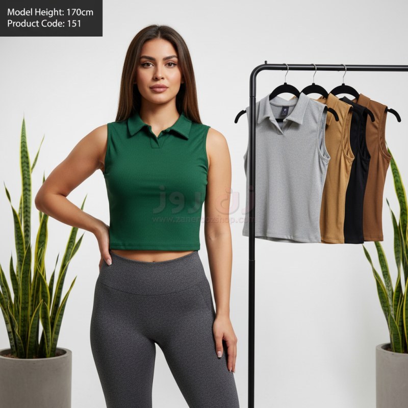 مشخصات تاپ زنانه بدون آستین رکابی یقه مردانه