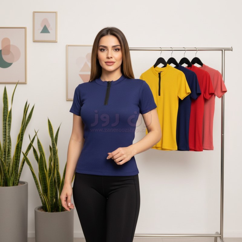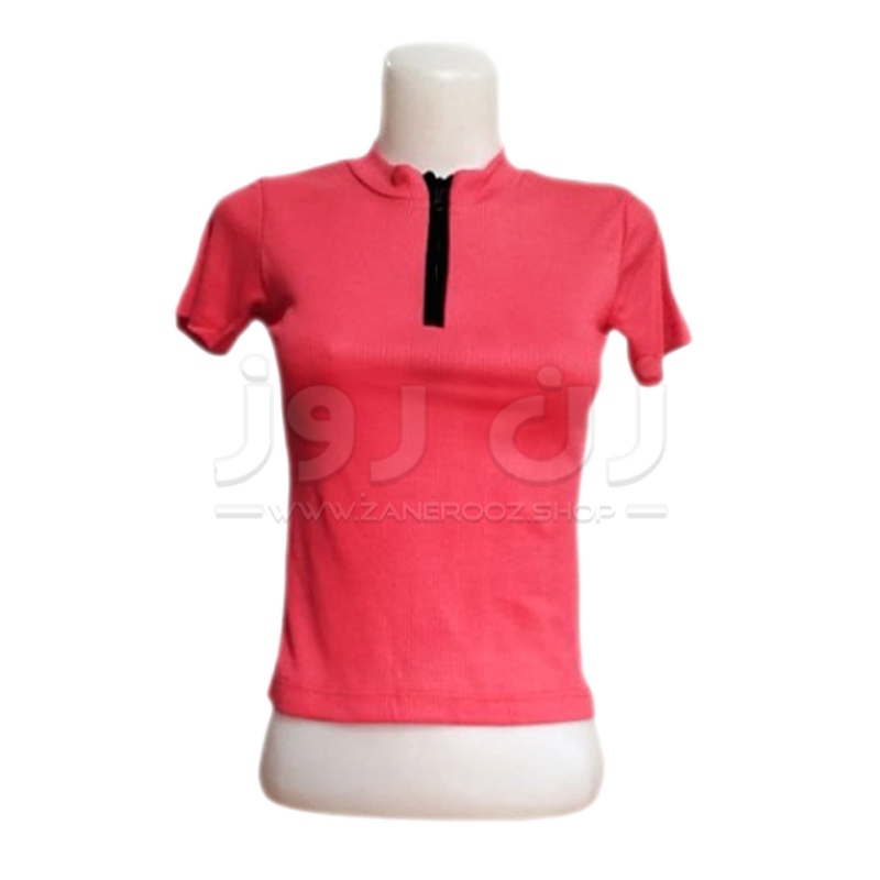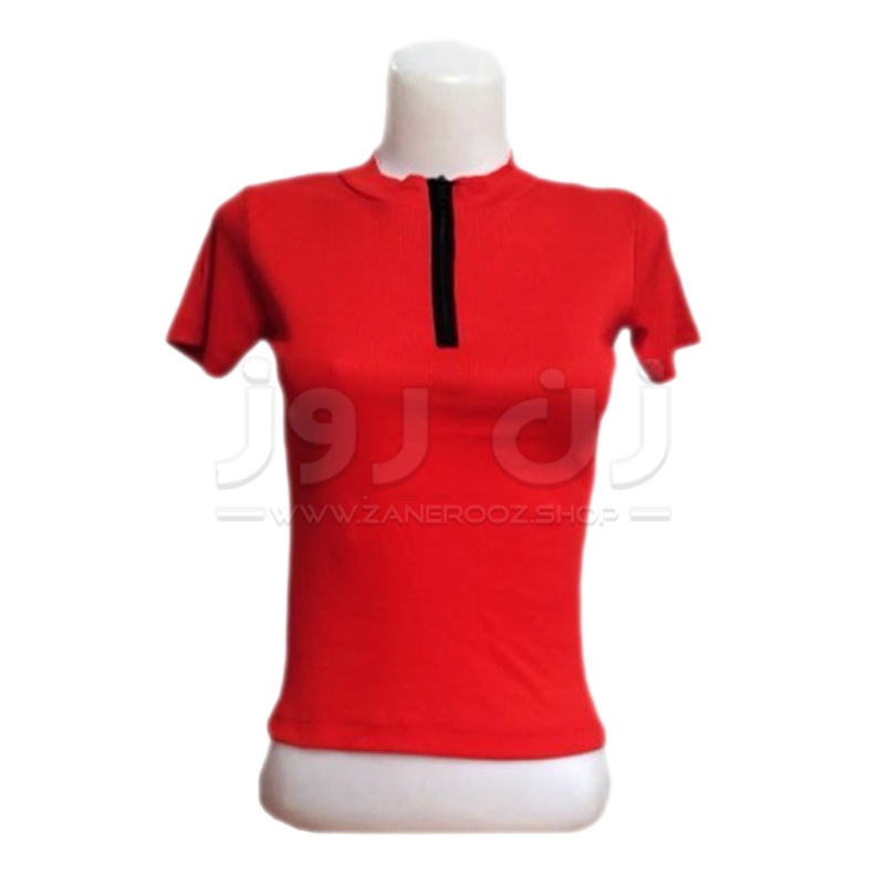 تیشرت زنانه آستین کوتاه یقه زیپ دار