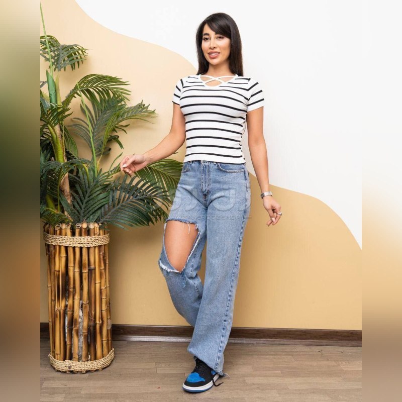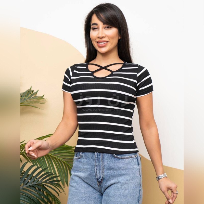 تیشرت زنانه یقه ضربدری راه راه فانریپ