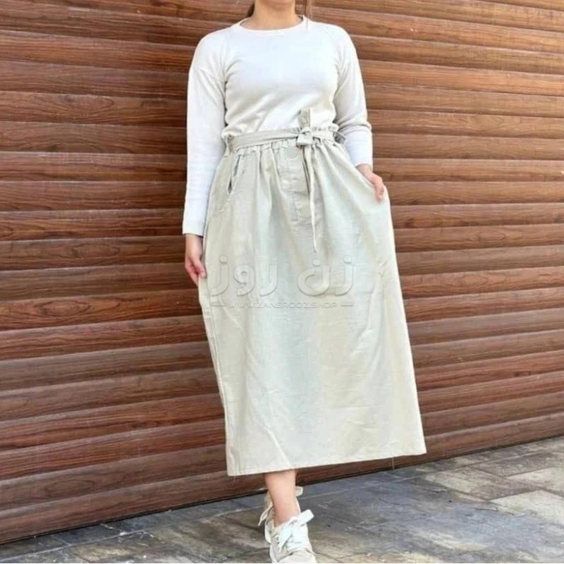 اندازه، جنس، رنگ بندی/سایزبندی دامن لنین ساده بلند بیرون پوش