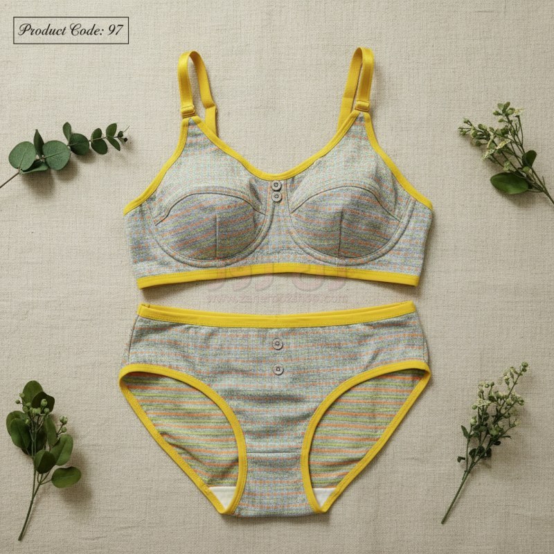اندازه، جنس، رنگ بندی/سایزبندی ست شورت و سوتین دکمه دار طرحدار