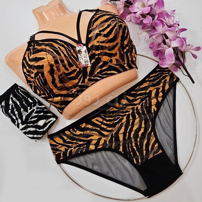 اندازه، جنس، رنگ بندی/سایزبندی ست شورت و سوتین ببری هارنسی فنردار