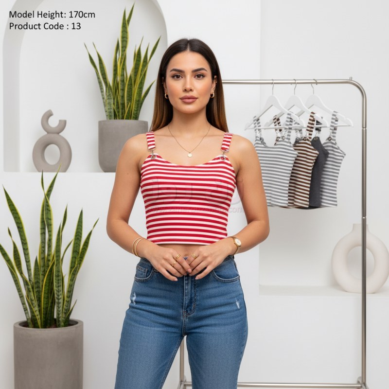 خرید کراپ زنانه حلقه کراپ زنانه بندی راه راه مدبر دار