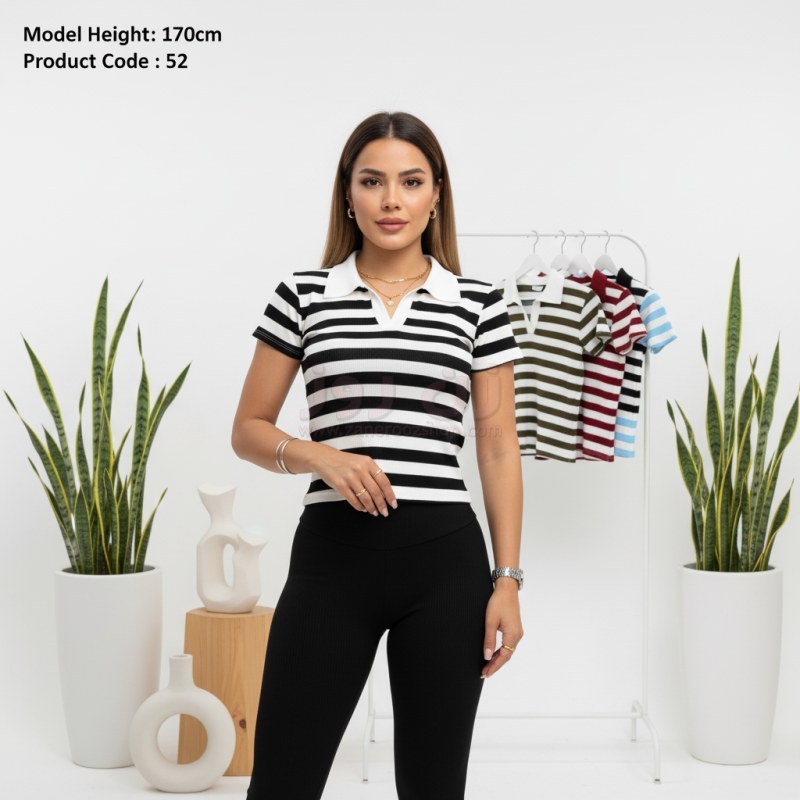 اندازه، جنس، رنگ بندی/سایزبندی کراپ زنانه راه راه یقه مردانه فانریپ کبریتی