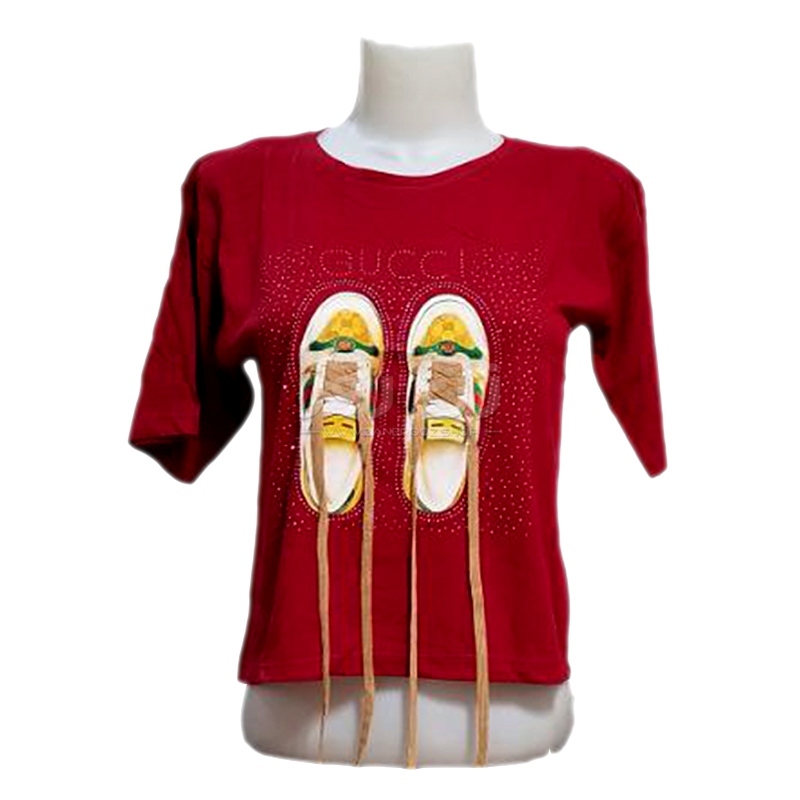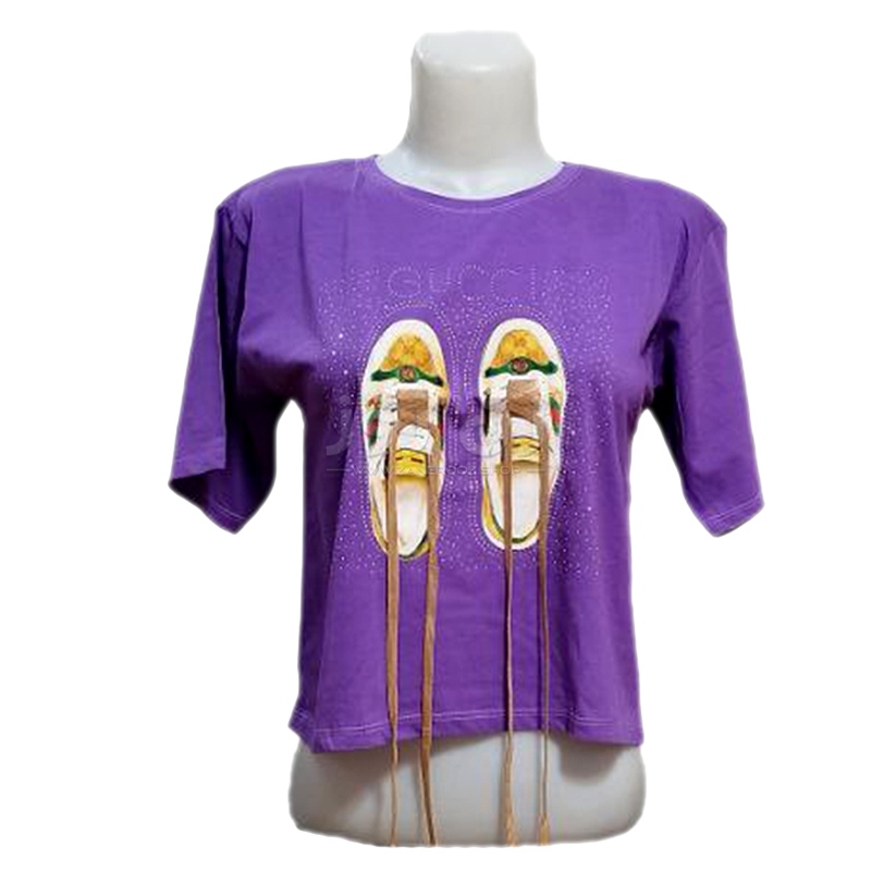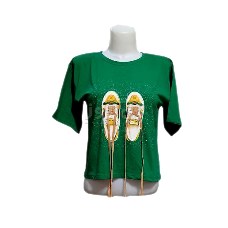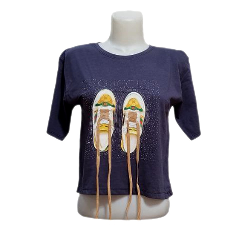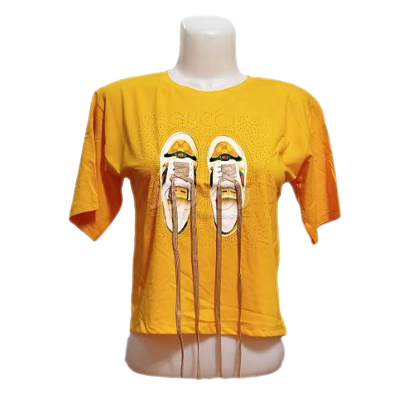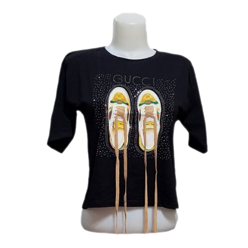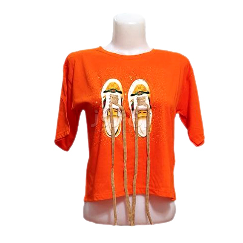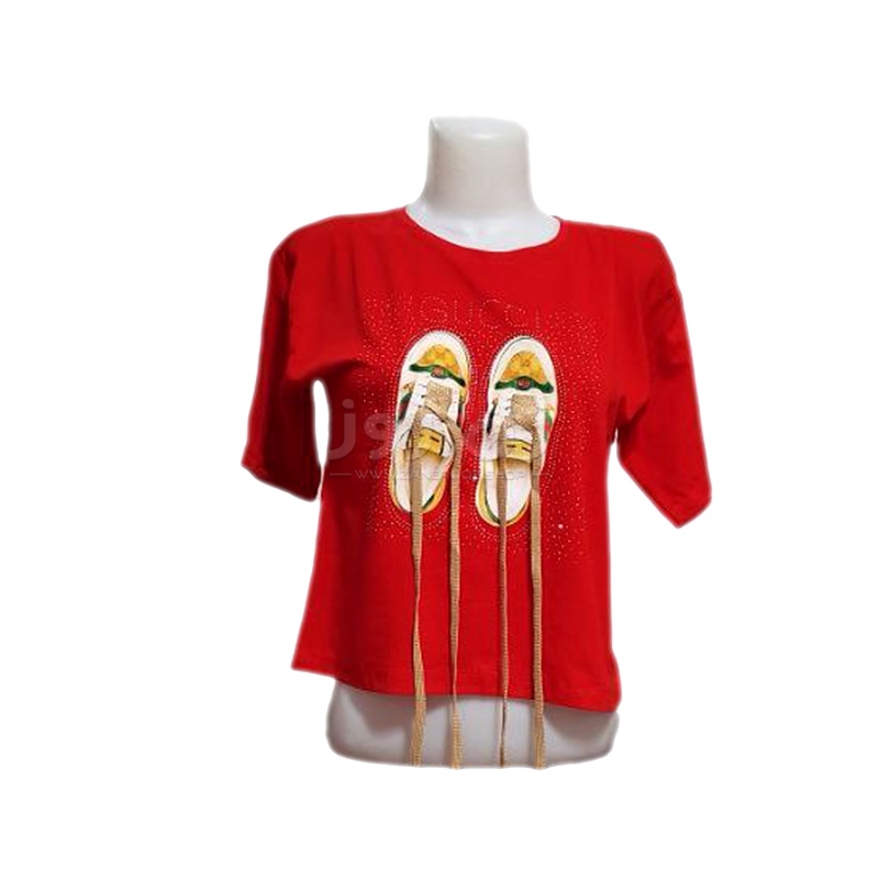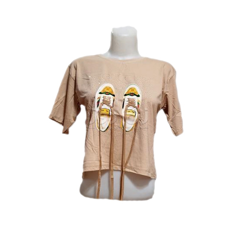 کراپ زنانه نگین دار طرح کتونی با بند